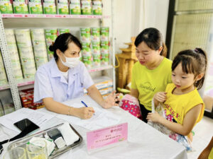 Khi đưa bé đi khám dinh dưỡng, bố mẹ được hướng dẫn chế độ ăn uống khoa học, phù hợp với sự phát triển của bé.